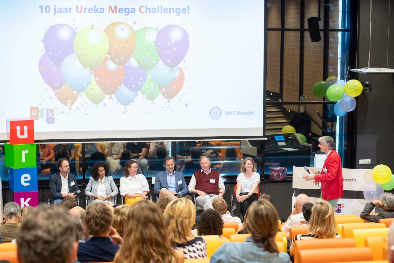 Op woensdag 5 juni 2024 vond de tiende finaleshow van de Ureka Mega Challenge plaats. Deze lustrumeditie had een feestelijk tintje en had daarom dit jaar een extra uitgebreid programma. Tijdens de jaarlijkse Ureka Mega Challenge brengen deelnemers innovatieve ideeën in om de zorg te verbeteren. Dit jaar won ‘HELLO’: een goedwerkend levermodel om effectief de toxiciteit van medicatie in de lever te voorspellen.