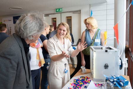 Omdat het dit jaar het lustrumjaar was, was er een inspiratiemarkt met dertien stands waarin oud-deelnemers hun inmiddels gerealiseerde producten toonden. Ook het team van de allereerste winnaar van de Ureka Mega Challenge, Karianne en Pauline van de organisatie Arthrosave KneeReviver, was aanwezig. Ze vertelden over hun reis na de Ureka Mega Challenge in 2012: “We zijn een onderneming geworden en ons product is inmiddels een CE-gemarkeerd knie-device. Er zijn in totaal al 200 kniedistracties gedaan. De Ureka Mega Challenge heeft ons geholpen om te investeren in de verdere ontwikkeling van ons product!”