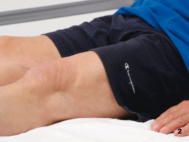 - Duw nu de knieholte in het matras en houd dit 10 seconden vast.